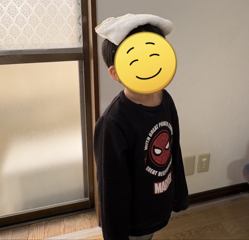 【取り組み②頭にタオルを乗せて歩く】